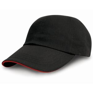6 panel. Low profile. Unsupported front panels. Suitable for embroidery and print. Pre-curved peak with 4 stitched lines. Stitched eyelets. Contrasting colour sandwich peak. Fabric size adjuster with antique brass buckle.Decoration Guidelines:Decorating methods: Embroidery & Transfer print Decorators access point: Open.